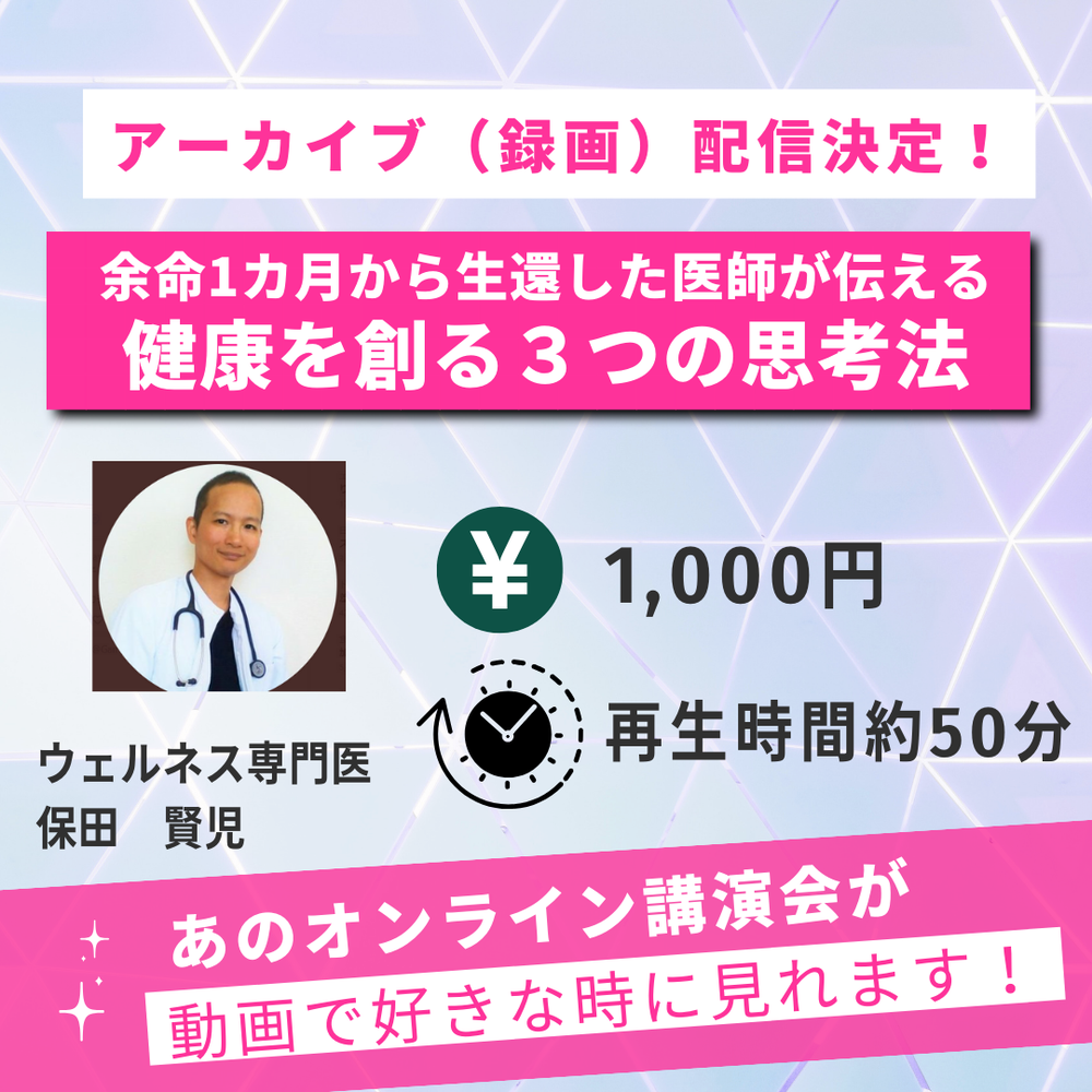【オンライン講演会アーカイブ】余命1カ月から生還した医師が伝えたい健康を創る3つの思考法